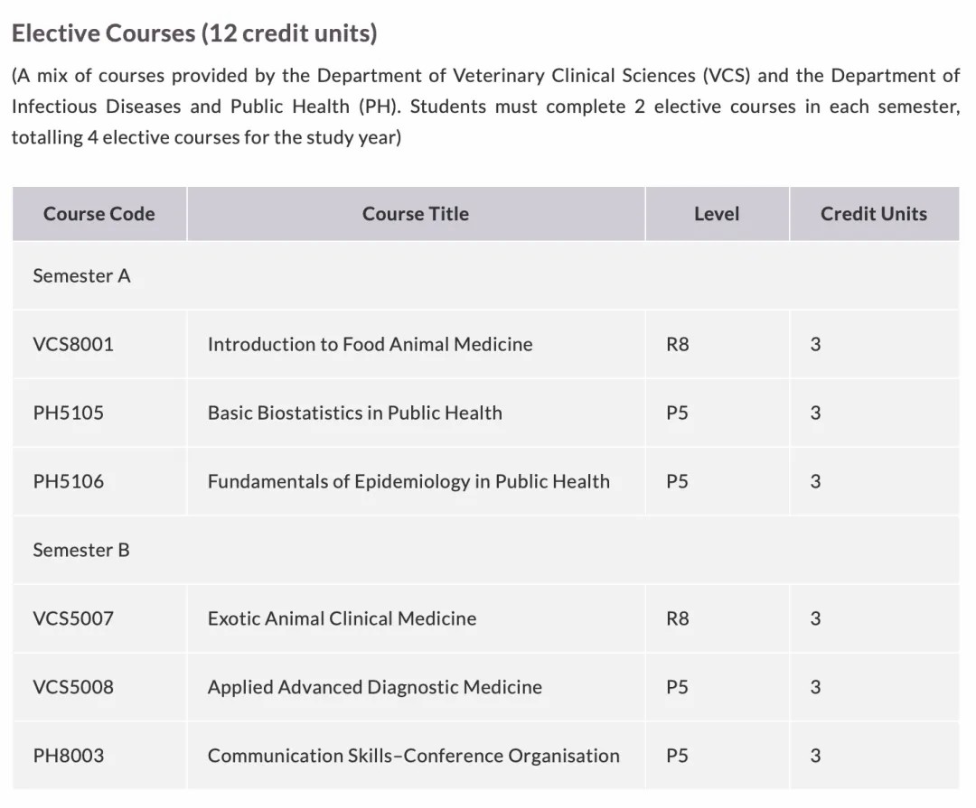 MVetMed亦为执业兽医提供进修途径,拓展科研、教学及跨境合作机会,为多元化兽医职业发展奠定坚实基础。值得一提的是,城大兽医学院是亚洲唯一获得国际双重认证的学院,同时获得英国皇家兽医学院 (RCVS)和澳大利亚兽医委员会 (AVBC)的认可。