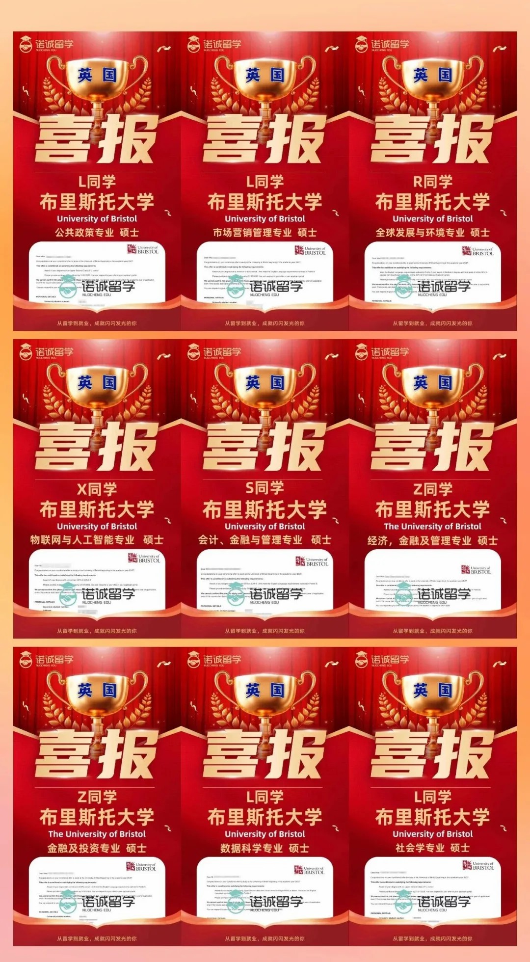 26Fall 申请季,诺诚留学依旧火力全开,稳扎稳打交出亮眼成绩单!一大波布大 offer 强势刷屏,覆盖商科、社科、工科三大热门领域,帮众多同学敲开了梦校大门!