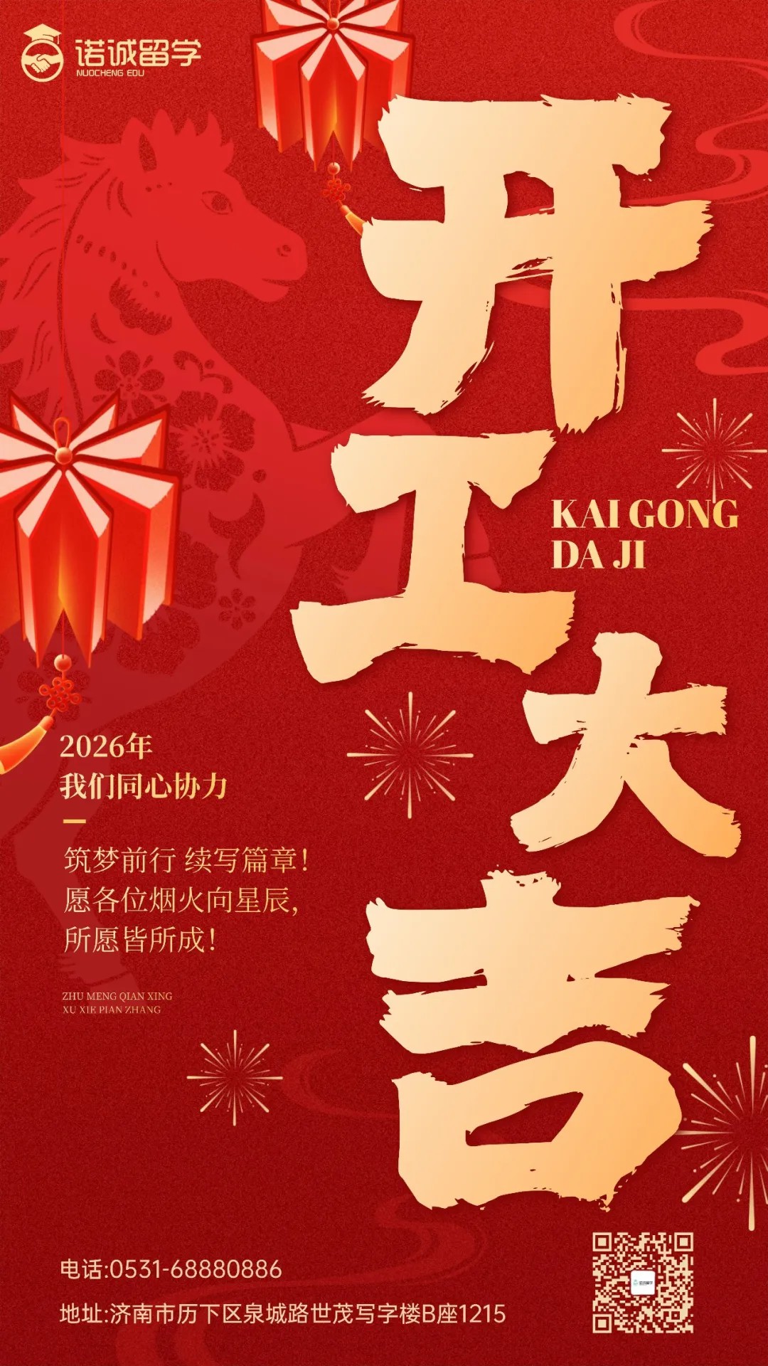 开工大吉!诺诚留学祝您事业启新,马年腾飞!