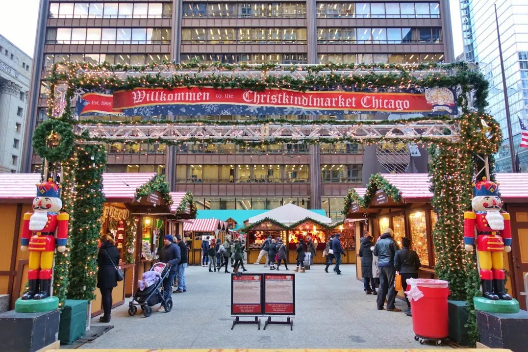 漫步在芝加哥圣诞集市,就如同置身于德国集市!木制摊位上陈列着艺术品和手工艺品,空气中弥漫着节日音乐和烤坚果的香味。在闪烁的灯光和节日装饰中漫步时,不妨尝试传统的德国美食,如香肠、椒盐脆饼和热红酒。芝加哥圣诞市集不仅有独特的礼物,还举办多样的节庆活动,包括现场表演、节日节目,甚至还有圣诞老人助兴。别忘了带上一个收藏版纪的念杯,为你的热饮增添节日气氛!