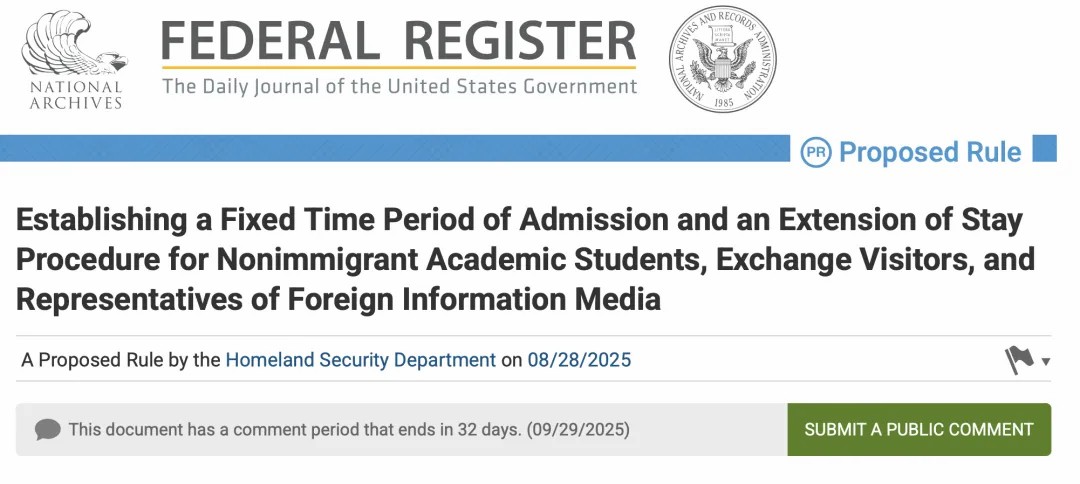 美国国土安全部(DHS)刚刚发布的《联邦公告》(Federal Register)中一项拟议规则(Proposed Rule),目前正处于公共评论阶段,评论截止日期是2025年9月29日。