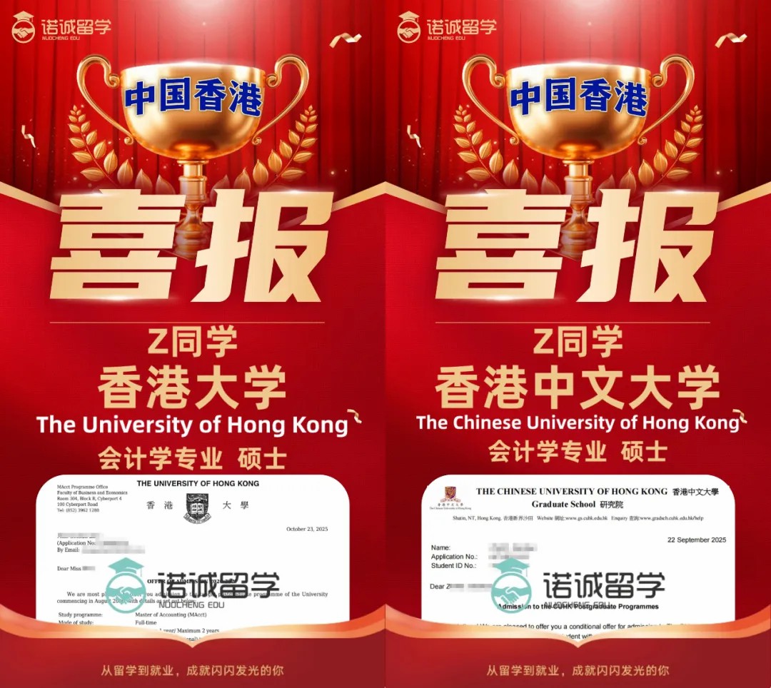 家人们!2026年硕士申请季正在如火如荼的进行中,咱们团队传来振奋人心的好消息——成功帮一位在职同学拿下香港中文大学与香港大学两大名校的会计学硕士录取!要知道,港校会计赛道每年申请者挤破头,能同时斩获这两所顶尖院校的offer,绝对是硬实力与精准规划的双重胜利!