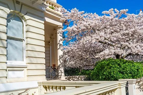 避开热门公园的人潮,诺丁山的樱花藏着意外惊喜——奶油色维多利亚式联排建筑旁,几株樱花树悄然绽放,粉白花瓣与彩色房屋相映,自带电影感,逛完樱花还能顺路打卡波特贝罗路集市,一举两得。