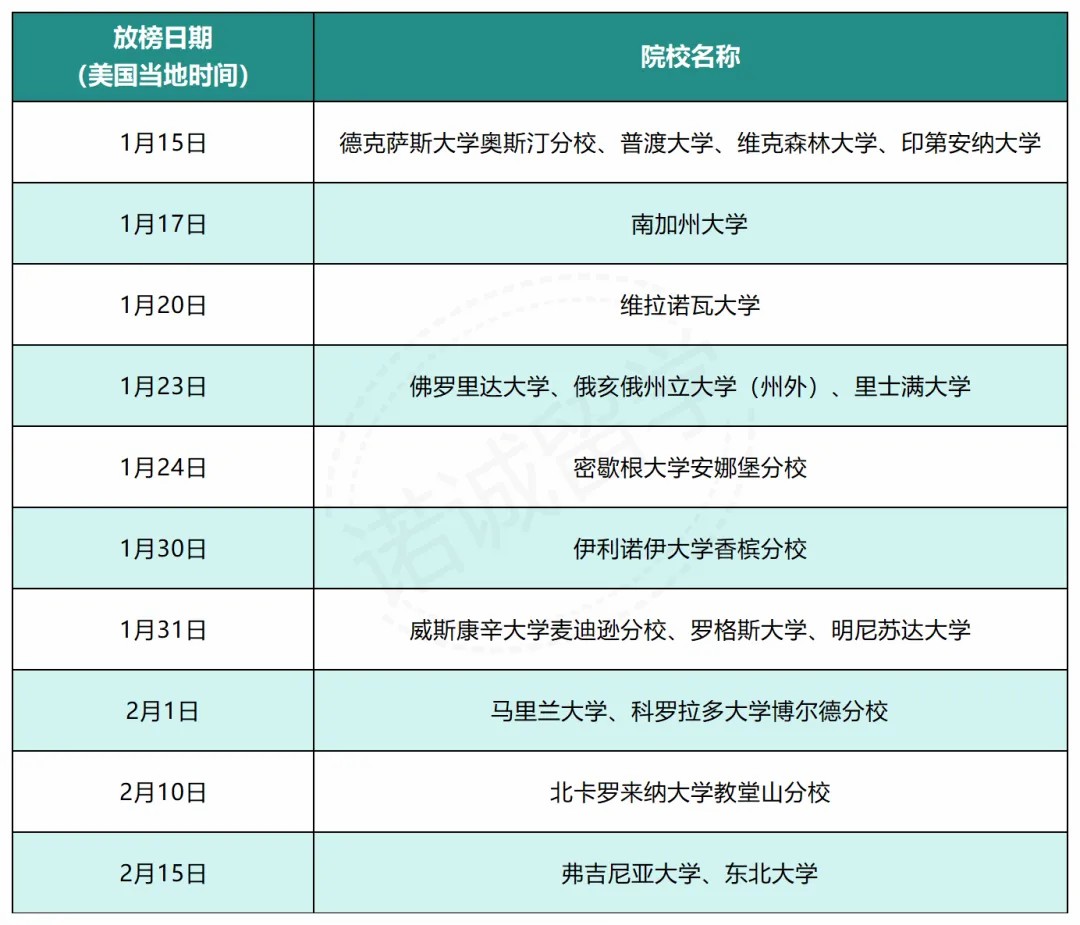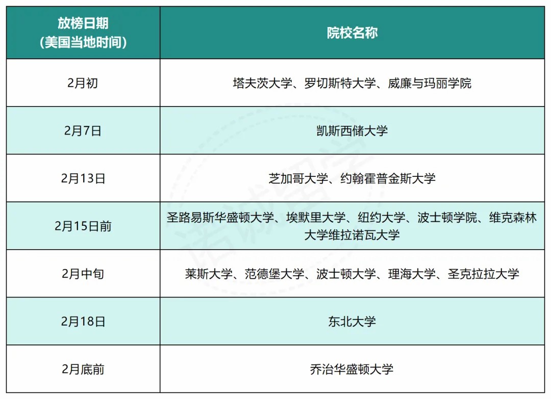 除了EA,申请了ED2的宝子也要注意!ED2放榜集中在2月中旬,属于绑定式录取,一旦录取需确认入读。部分热门院校ED2放榜时间参考如下:
