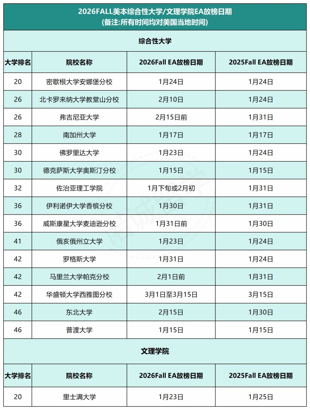 除此之外,小诺为了帮助申请季的同学们合理安排时间,这里汇总了今年及去年Top50大U&Top30文理学院EA放榜日期供大家参考!