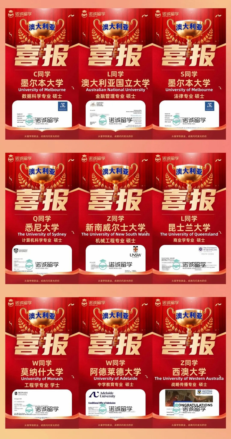 名校录取捷报|26Fall诺诚学子横扫澳洲顶尖名校,求职留澳双开挂~